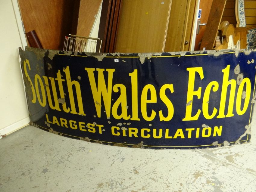 An early twentieth century enamel on metal advertising sign 'South Wales Echo - Largest Circulation'