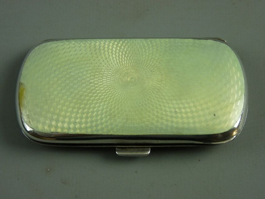 A CONTINENTAL SILVER & GUILLOCHE ENAMEL LADY'S COCKTAIL CIGARETTE CASE, import mark for 1922, 9 cms long, 2.4 troy ozs, (13 mm repair to enamel at one edge, further surface scratching)