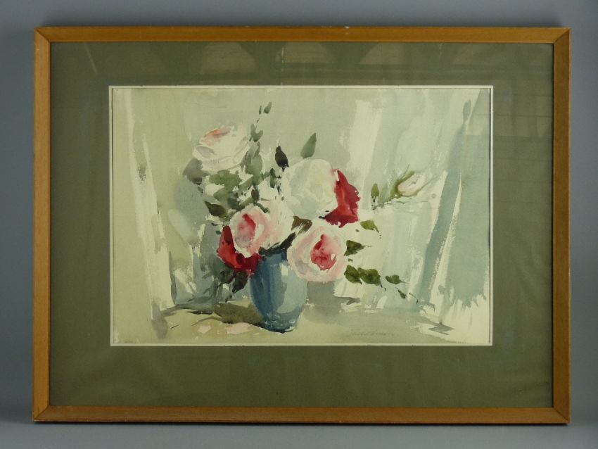 EDWARD WESSON (see page 1678 'Artists in Britain, 1945 by Buckman') a finely executed watercolour - still life, flowers in a vase, signed, 37 x 55 cms