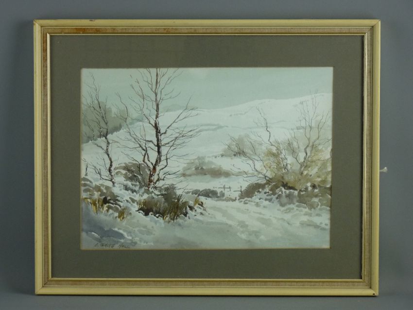 AFTER E GRIEG HALL watercolour - Windermere under snow, dated verso 1980, signed bottom left, 26.5 x 37 cms