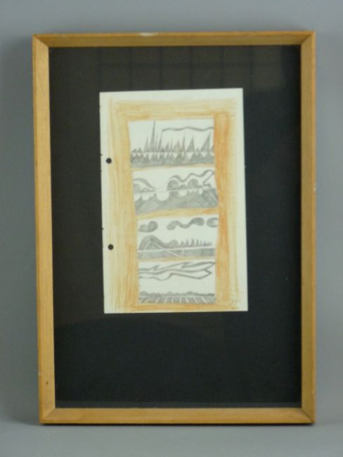 JONAH JONES pencil drawing - being a design for a glass window, signed with initials and entitled verso 'Mountain Theme', 20 x 13 cms