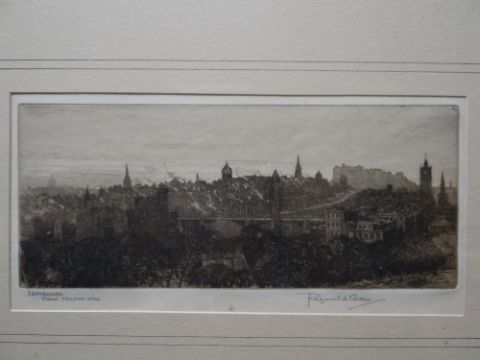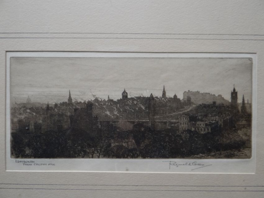 A good antique etching entitled 'Edinburgh from Carlton Hill' and signed by Reginald Green
