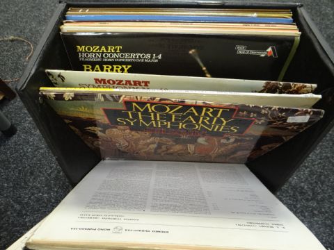 A quantity of vinyl records and a crate of mixed items including vintage Electrolux vacuum cleaner etc