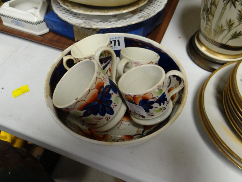 Gaudy Welsh slop bowl and four beakers