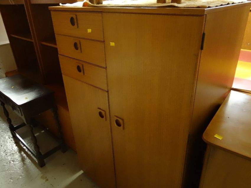 Late twentieth century combination wardrobe and a lightwood combination lounge unit in two parts