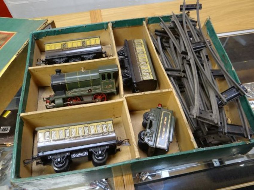 A boxed Hornby tin-plate train set