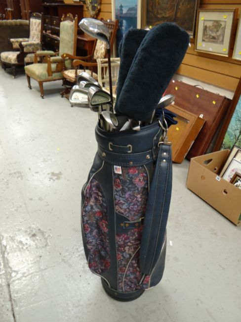 Set of Titleist oversize golf clubs together with Rhythm by Cougar and other clubs (15 in total) in golf carry bag
