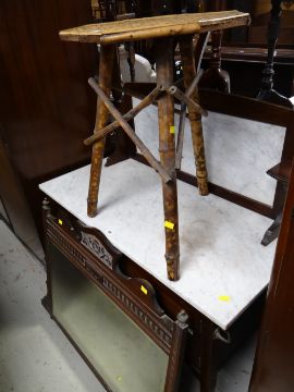 A vintage tripod hexagonal topped bamboo side table together with a mahogany framed overmantel mirror