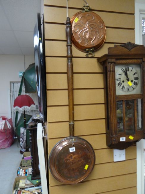 A copper bed warming pan with a copper mould