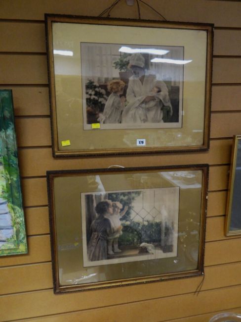 Two framed early twentieth century coloured prints entitled 'Introducing Baby' & 'Daddy's Coming'