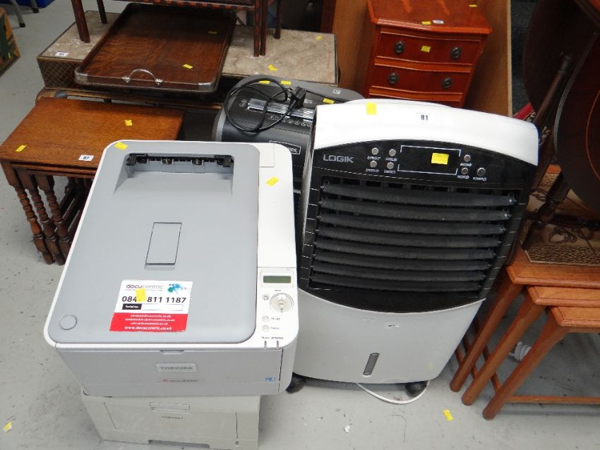 A parcel of electrical items to include a Logik humidifier, Toshiba and Samsung laser printers together with a paper shredder