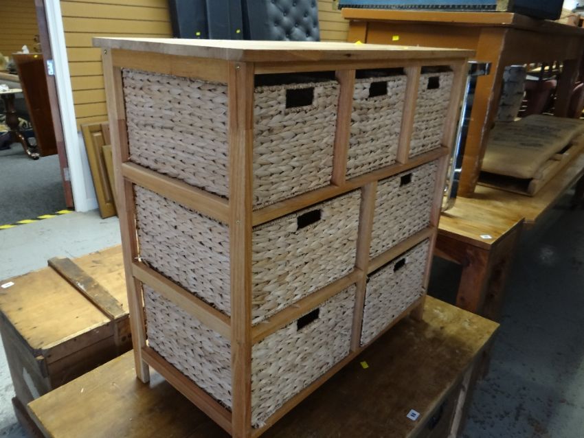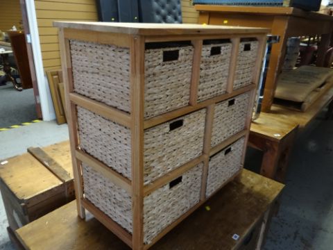 A modern lightwood seven drawer storage unit