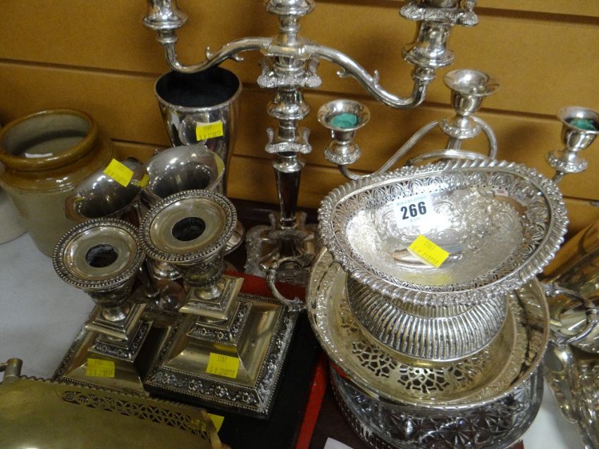 EPNS trumpet vases, candelabra, bowls etc