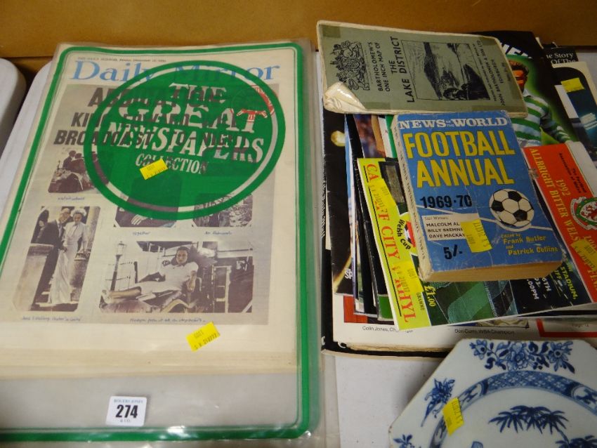 A parcel of vintage football programmes mainly relating to Wembley Stadium and others together with two editions of the Great Newspapers Collection, 'VE Day' & 'The Abdication'