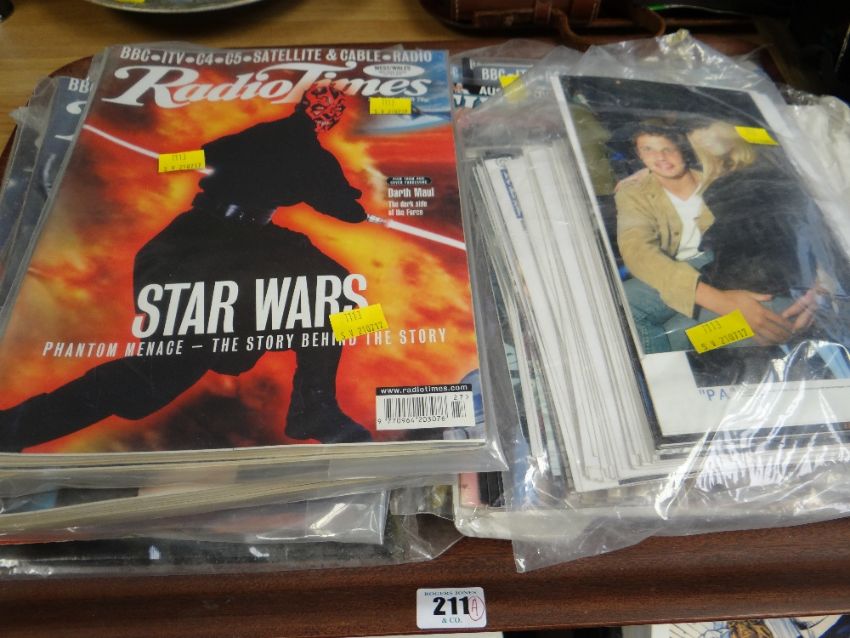 A selection of magazines promoting various Star Wars films together with a selection of movie star photographs