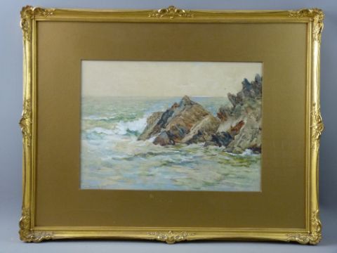 F BESWICK watercolour - rocky coastal scene, signed and dated 1922, 25 x 35 cms