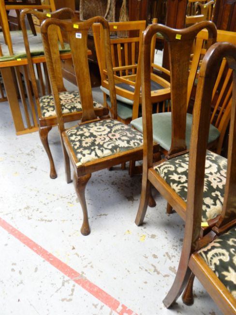 Four vintage splat back cushion seated dining chairs