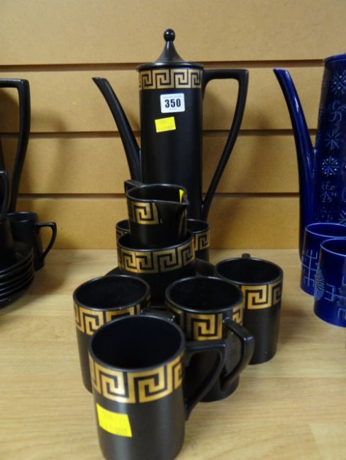 A Portmeirion black & gold Greek Key coffee set