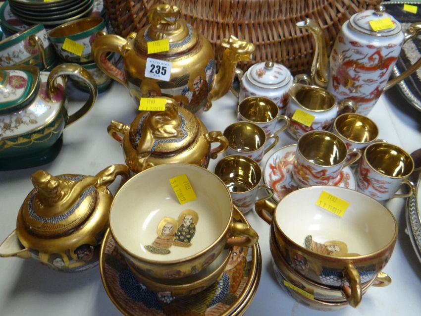 A good Japanese Satsuma-ware tea set together with another gilt & decorated Samurai china coffee set