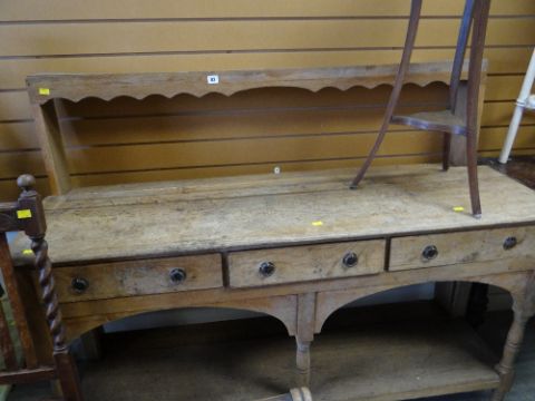 A stripped wood open dresser