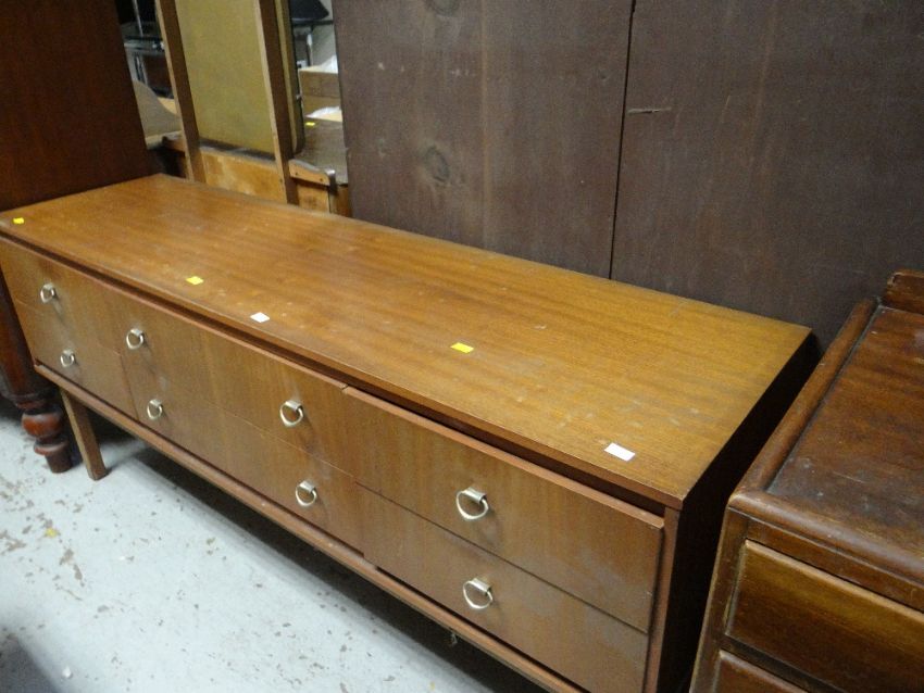 A vintage four-drawer and mirrored dressing table together with a vintage chest of drawers