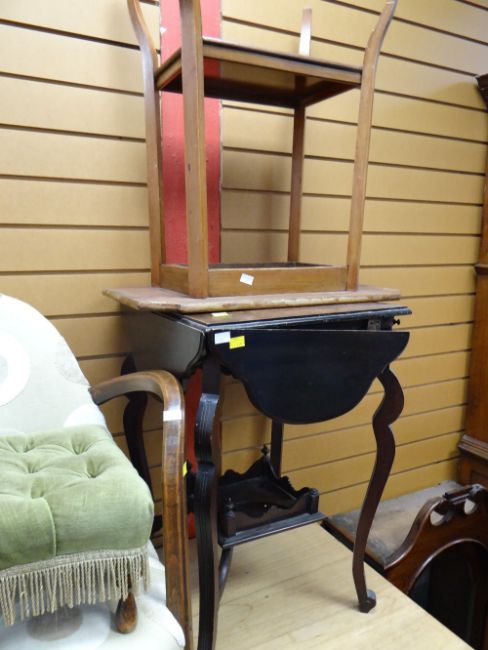 A metal legged long work-table together with a Long John-style coffee table & two occasional tables