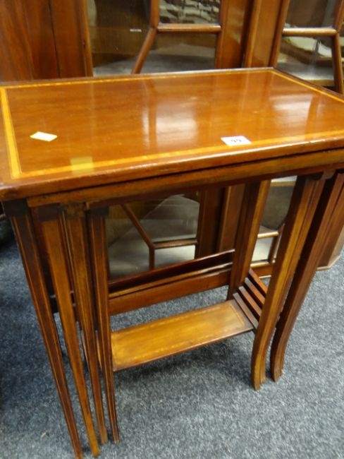 A nest of four mahogany tables with banding & inlay