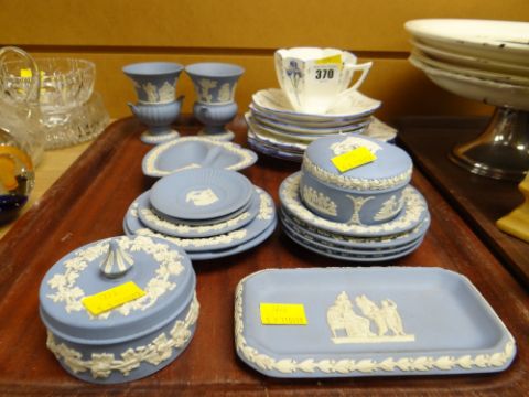 A parcel of Wedgwood blue & white Jasperware together with a small parcel of Shelley 'Iris' decorated tea ware