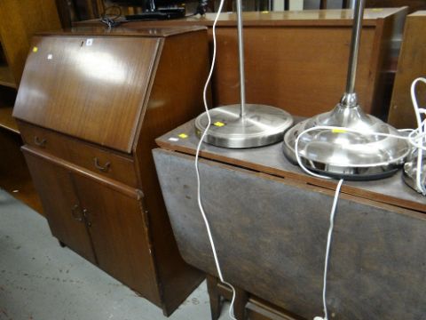 Vintage bureau, oak effect bookcase and drop leaf dining table