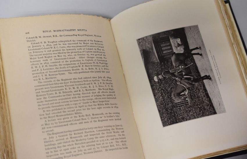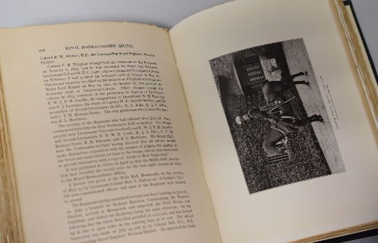 TWO RARE MONMOUTHSHIRE MILITARY HISTORIES being 'On The Western Front 1/3RD Monmouthshire Regiment' by Somerset, Tyler and L.D.Whitehead, Abergavenny 1926, illustrated with maps and plates and bound in black and red calf gilt with a poignant presentation copy from Capt. L. D. Whitehead to Field Marshall The Lord Plumer 'In Memory of April-May 1915' together with 'The Royal Monmouthshire Militia' printed in London, 1910 by B E Sargeaunt