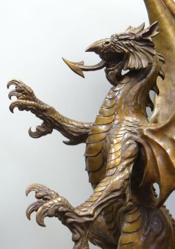 STEPHEN WINTERBURN limited edition (2/9) twentieth scale model cast bronze sculpture - for 'The Welsh Dragon Project', the dragon in rampant pose, mounted to a stepped Welsh oak plinth, signed, 124cms high (203cms including plinth) Provenance: entered by Simon Wingett, the CEO of The Welsh Dragon Project, a landmark sculpture to be built on the historical gateway into Wales (on the Welsh / English border, at the junction of the A5 & A483 near Chirk). For further details on this go to www.thewelshdragon.co.uk