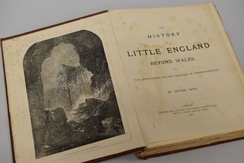 TWO RARE BOOKS RELATING TO PEMBROKESHIRE being 'History of Little England Beyond Wales and the Non-Kymric Colony Settled in Pembrokeshire' by Edward Laws. London 1888 being a fine copy in original brown cloth, with good illustrations. This the author's copy with his fine bookplate, together with Royal Commission Ancient Historical Monuments. Vol V11. 'County of Pembroke' 1925, a small folio and fine copy in original binding profusely illustrated - many folding plates. Uncommon but very rare in this fine condition.