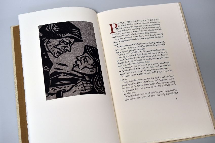 SIR KYFFIN WILLIAMS RA limited edition (1/350) Gregynog Press - 'Pryderi', dated 1998 - designed by Kyffin Williams and printed in Baskerville on Velin Arches mould-made paper, signed and with eight linocuts by the artist, original linen covered boards with linocut pasted onto the upper cover together with JOHN SEWELL limitied edition (1/360) Gregynog Press - 'Kyffin - A Celebration', dated 2007, bound in quarter black leather with pale blue cloth, hand sewn silk end-bands, titled in gold to spine and cloth sides blocked in black on the upper cover, complete with slip case