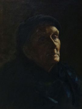CAREY MORRIS oil on canvas - head and shoulders portrait of an elderly Cornish woman, entitled verso on handwritten French label 'Une Vielle Femme' with reference to the artist's birth-date (16th May 1882) and birthplace (Llandeilo), together with a reference to the artist being a student of Stanhope A Forbes RA, signed and dated, 46 x 35cms Provenance: exhibited in Paris, second faint label handwritten by the artist with London address and indistinct title, please see Page. 25 & 27 of 'A Celtic Canvas - Life and Times of Carey Morris Artist 1886-1968' by Glyn Rhys (Y Lolfa Cyf, 2013)