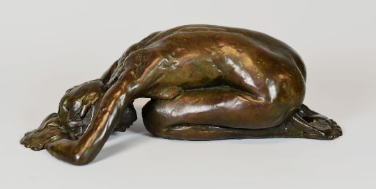 DAVID WILLIAMS-ELLIS limited edition (9/9) bronze - figure bent over, entitled 'Ornella', signed with initials and dated '89, 24cms long
