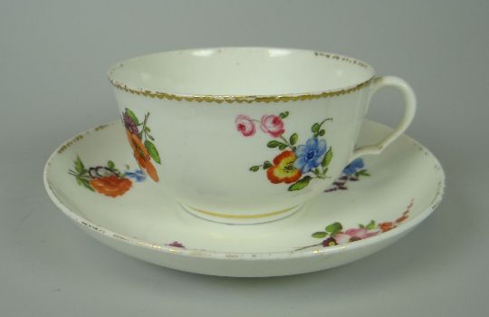 A SWANSEA CUP & SAUCER of plain form and painted with flowers, circa 1800