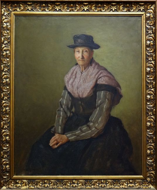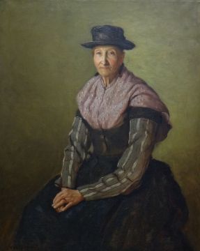 CAREY MORRIS oil on canvas - three-quarter portrait of a seated woman, entitled 'A Welsh Fisherwoman' on Royal Society of Portrait Artists label verso, signed, 126 x 100cms Provenance; exhibited at The Royal Academy - see Page 41/42 of 'A Celtic Canvas - Life and Times of Carey Morris Artist 1886-1968' by Glyn Rhys (Y Lolfa Cyf, 2013)