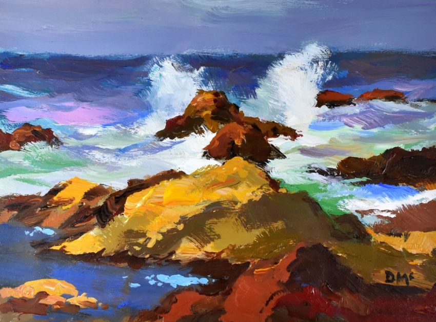 DONALD McINTYRE acrylic - seascape, entitled verso 'Dark Sea & Rocks, No. 2', signed with initials, 29 x 39cms Provenance: purchased directly from the artist, a family friend of the vendor, circa 2000