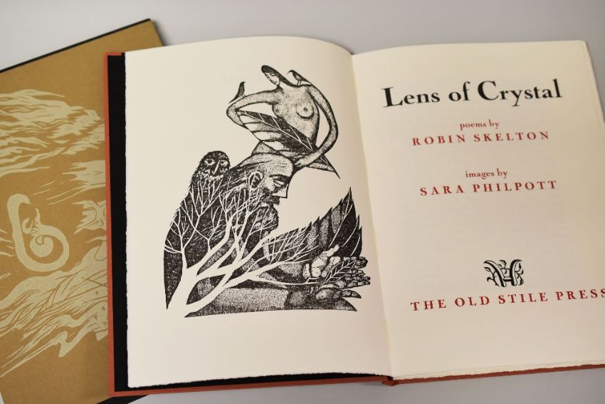 THREE FINE SIGNED LIMITED BOOKS from The Old Style Press Llandogo including 'Lens of Crystal' by Robin Skelton, images by Sara Philpott (1996), 'Joys' by Thomas Traherne, illustrated by Angela Lemaire (2003) and 'Taliesin and the Mockers' by Vernon Watkins, images by Glenys Cour (2004)