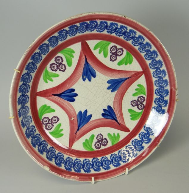 A COLLECTION OF NINE WELSH SPONGE WARE POTTERY PLATES / DISHES, various sizes