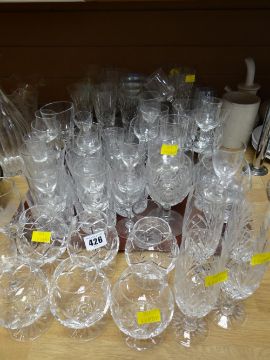 A large quantity of drinking glasses