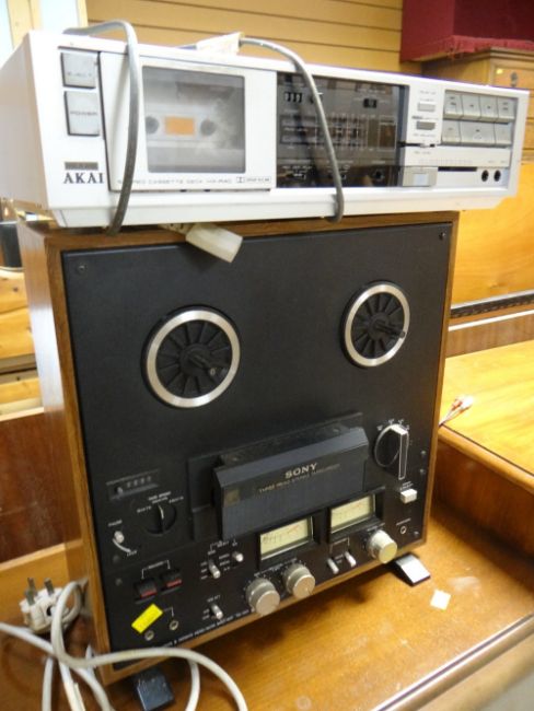 A Sony three-head stereo tape corder & an Akai stereo system