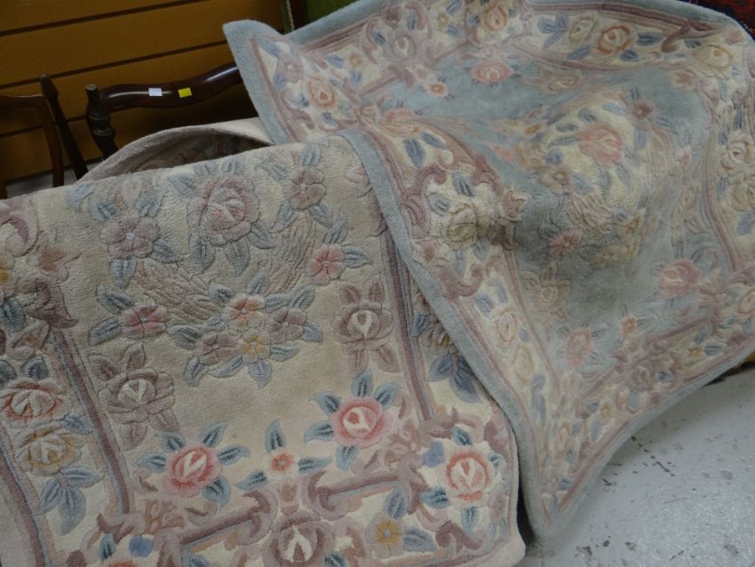 Two modern washed Chinese woollen rugs, pale blue & pink