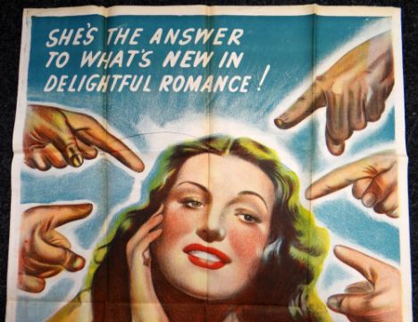 LADY IN QUESTION original cinema poster from 1940, poster is numbered, folded and in sections, wear around fold lines, 220 x 100cms (six-sheet)Provenance: http://www.bbc.co.uk/news/uk-wales-south-east-wales-40966146