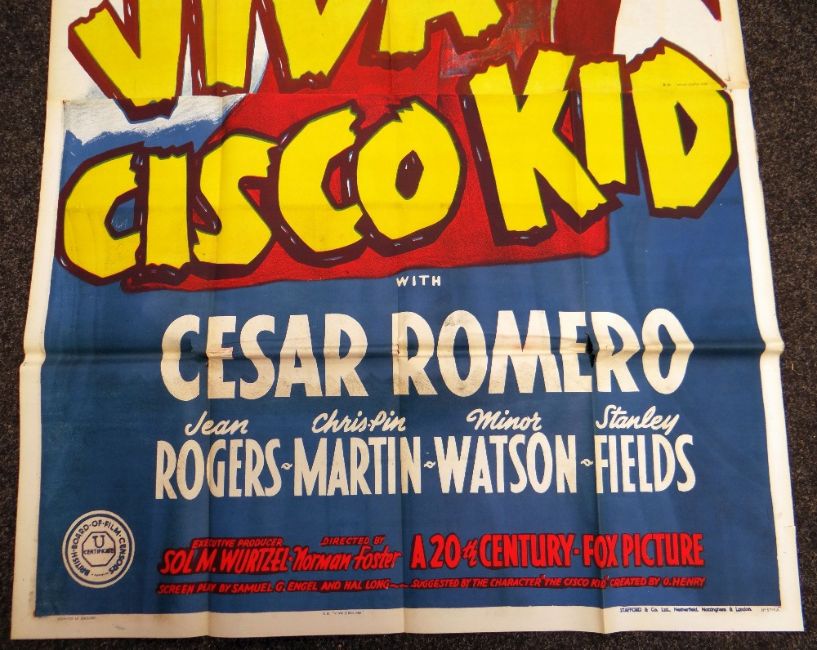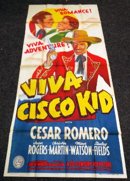 VIVA CISCO KID original cinema poster from 1940, poster is numbered, folded and in two sections, wear around fold lines, 220 x 100cms (six-sheet)Provenance: http://www.bbc.co.uk/news/uk-wales-south-east-wales-40966146