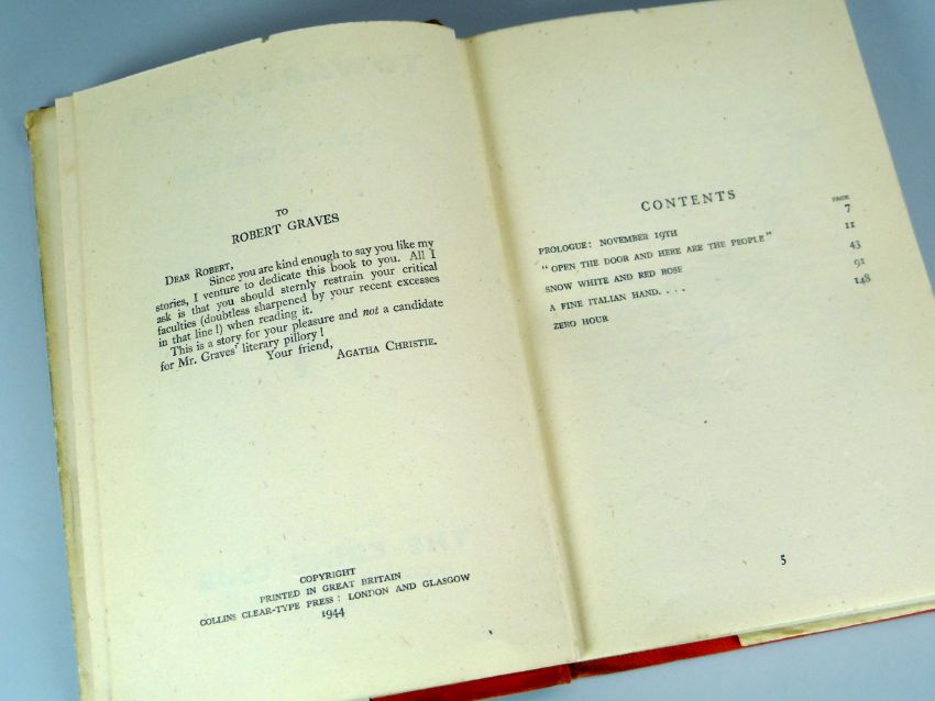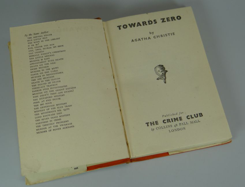 A VOLUME OF 'TOWARDS ZERO' BY AGATHA CHRISTIE, 1st Edition 1944 by Collins, London