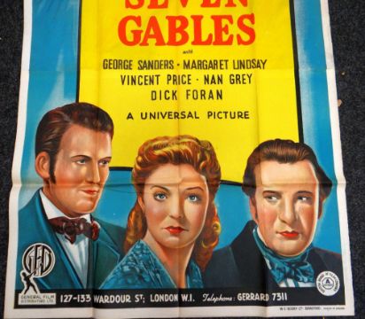 HOUSE OF SEVEN GABLES original cinema poster from 1940, poster is folded and in three sections, wear around fold lines, 220 x 100cms (six-sheet)Provenance: http://www.bbc.co.uk/news/uk-wales-south-east-wales-40966146
