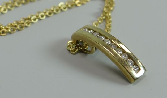 AN 18CT YELLOW GOLD NECKLACE & 10 X DIAMOND PENDANT the pendant of curved form, 7.3gms