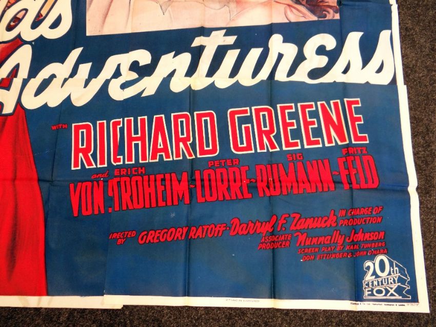 I WAS AN ADVENTURESS original cinema poster from 1940, poster is numbered, folded and in four sections, wear around fold lines, 220 x 195cms (twelve-sheet)Provenance: http://www.bbc.co.uk/news/uk-wales-south-east-wales-40966146