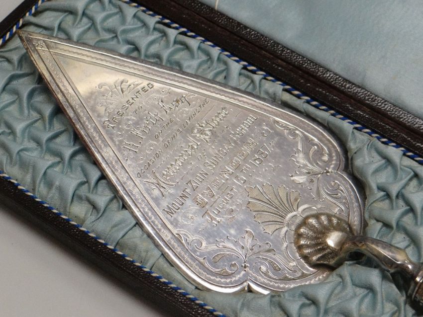 A CASED EPNS PRESENTATION TROWEL & A CASED SET OF SILVER TEA-SPOONS